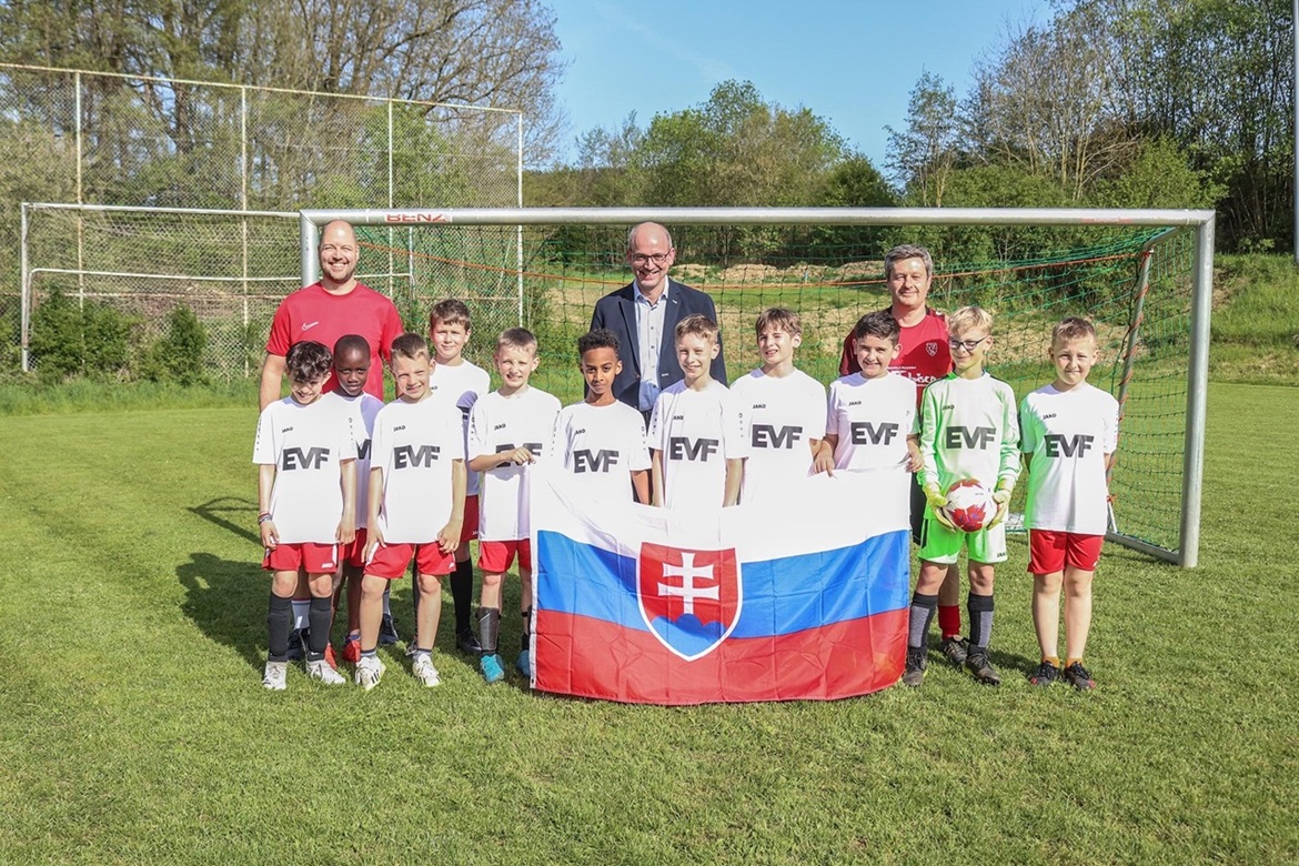 Ausgerüstet vom eigenen Sponsor, der EVF Göppingen, treten die TVBler im slowakischen Dress in den Farben weiß/rot an. Gespielt wird in sechs Gruppen (A - F) mit je drei Vorrundenspielen und anschließendem K.-o.-System bis zum Finale. Anpfiff für den TVB ist um 10:30 Uhr gegen die Ukraine (VfR Süßen). Im zweiten Vorrundenspiel um 12:00 Uhr trifft der TVB auf Belgien (SG Jebenhausen), um dann nach Spiel drei (13:30 Uhr) gegen Rumänien (RSK Esslingen) hoffentlich ins Achtelfinale einziehen zu können. Wer unsere E-Junioren in den Landesfarben der Slowakei anfeuern möchte, ist herzlich eingeladen, die Mini-EM 2024 hautnah mitzuerleben. Die Mannschaft ist jedenfalls heiß auf dieses außergewöhnliche Fußball-Highlight und freut sich auf jede Menge TVB-Zuschauer und lautstarke Unterstützung im Stadion.