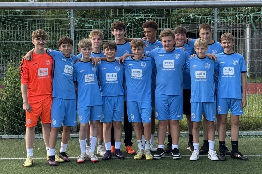 Ein großes DANKESCHÖN sagen die C-Jugend-Fußballer der 2ten Mannschaft des TVB an ihren Trikot-Sponsor Zeta Software GmbH aus Birenbach.